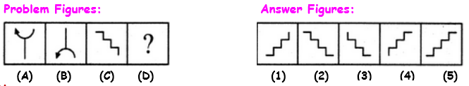 Each of the following questions consists of two sets of figures. Figures A, B, C and D constitute the Problem Set while figures 1, 2, 3, 4 and 5 constitute the Answer Set.,