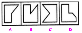 1. Find out which of the figures (A), (B), (C) and (D) can be formed from the pieces given in figure (X).