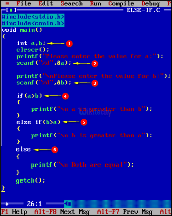 - In this statement we check the condition for the value “b” is greater than “a” which means, it prints “b is greater than a”.