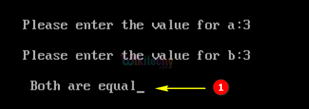 - Here in this output we get the, “a” value as “3” and “b” value as “3”, where the else condition section will be satisfied so the output will be displayed as “Both are equal”.
