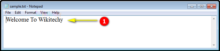 - Here we have shown the text “Welcome To Wikitechy “ from the notepad file “sample.txt” .
