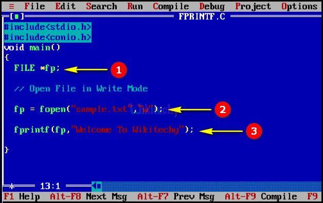 fprintf(fp,"Welcome To Wikitechy");