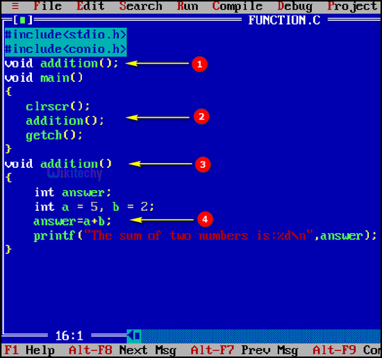 - Here, void addition() is said to be the calling function to get an addition values of a, b.