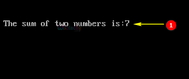 - Here in this output “The sum of two numbers:“ is printed where its sum of 5 & 2 =7 is shown here.