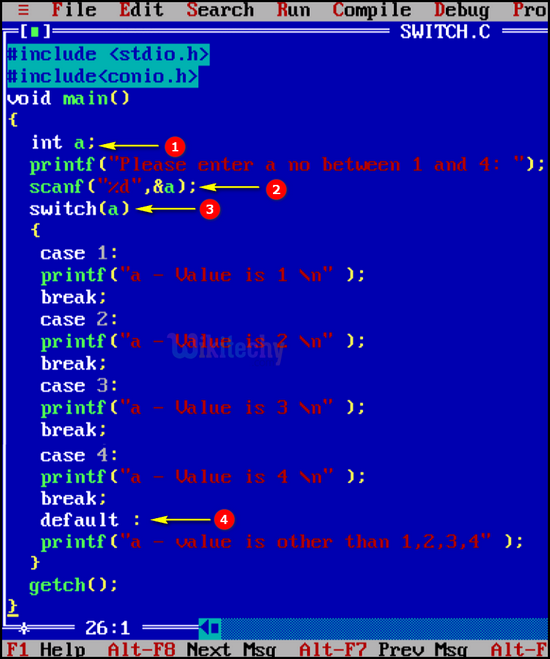 - In this statement we get the switch case expression value of the variable “a”. and based on the variable value the case statement will be executed.