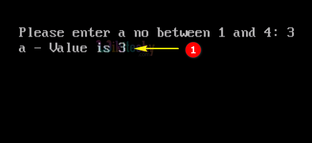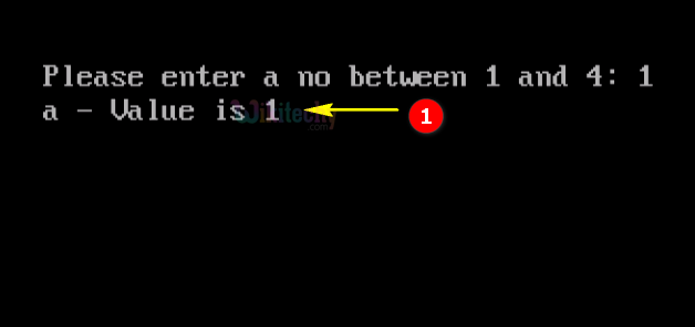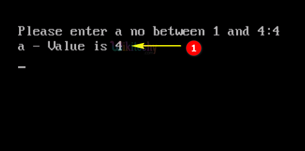- Here in this output we have entered the number 1, which will switch to “Case 1” so the output of “a-value is 1” .